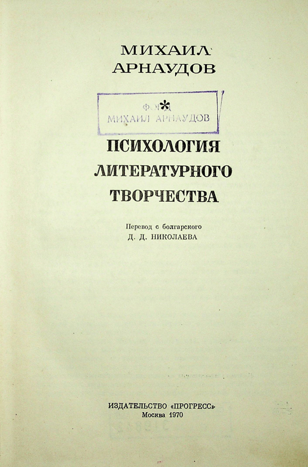 Психология литературного творчества Михаил Петров Арнаудов; пер. с болг. Дмитрий Николаев.