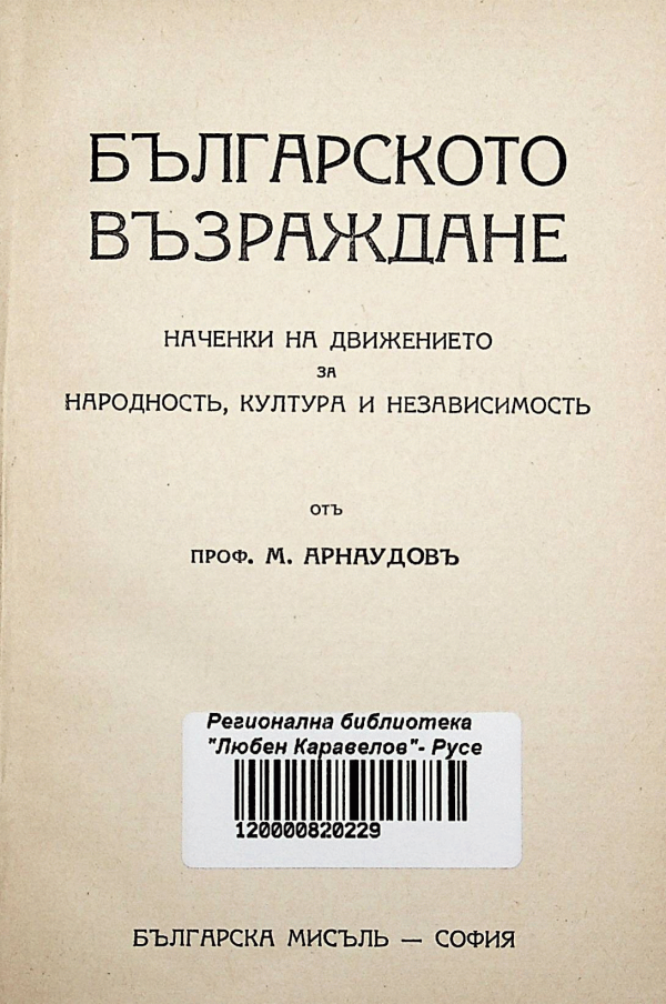 | Регионална библиотека "Любен Каравелов" Русе Фонд "Михаил Арнаудов" | МА 828 (Разгледайте рафт(Отваря се отдолу)) | Специални фондове ( старопечатни, редки и ценни, фонд М. Арнаудов) (само за читалня) | 120000820229 |