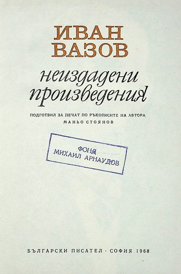 Неиздадени произведения Иван Минчов Вазов; подг. за печат Маньо Манев Стоянов.