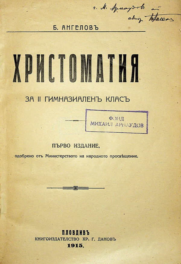 Христоматия за II гимназ. кл. състав. Божан Ангелов.