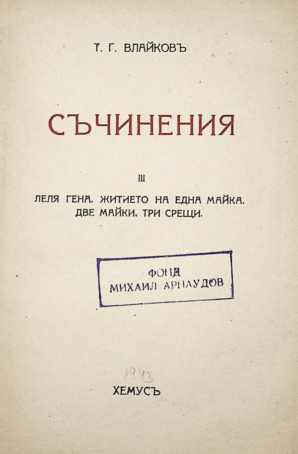 Съчинения В 4 т. Тодор Генчов Влайков; под ред. на Георги Константинов. Т. 3 Леля Гена ; Житието на една майка ; Три срещи
