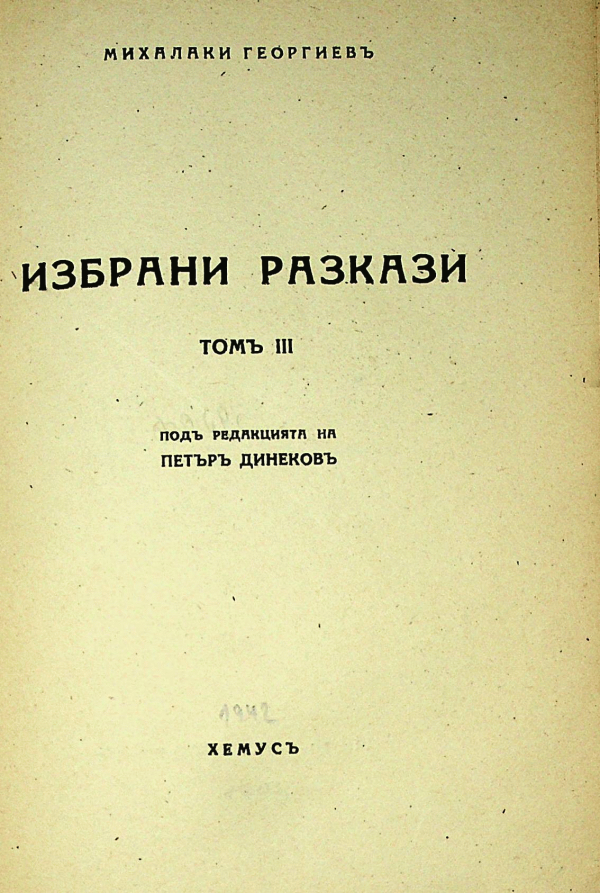 Избрани разкази Т. 1 - 3 Михалаки Георгиев; под ред. на Александър Филипов; ред. на том Петър Николов Динеков. Т. 3