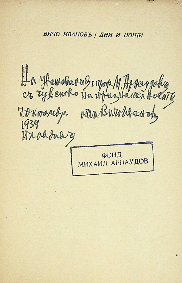 Π€ΠΎΠ½Π΄ ΠΠΈΡ Π°ΠΈΠ» ΠΡΠ½Π°ΡΠ΄ΠΎΠ² - ΠΠ²ΡΠΎΠ³ΡΠ°Ρ Ρ ΡΠ΅ΠΊΡΡ: ΠΠ° ΡΠ²Π°ΠΆΠ°Π΅ΠΌΠΈΡ Π³. ΠΏΡΠΎΡ. Π. ΠΡΠ½Π°ΡΠ΄ΠΎΠ² Ρ ΡΡΠ²ΡΡΠ²ΠΎ Π½Π° ΠΏΡΠΈΠ·Π½Π°ΡΠ΅Π»Π½ΠΎΡΡ ΠΎΡ ΠΠΈΡΠΎ ΠΠ²Π°Π½ΠΎΠ² 7. ΠΎΠΊΡΠΎΠΌΠ²Ρ. 1939 ΠΠ»ΠΎΠ²Π΄ΠΈΠ². - ΠΠ΅ΠΊΠ° ΠΏΠΎΠ΄Π²., Π½Π΅ΡΠ°Π·ΡΡΠ·Π°Π½Π°