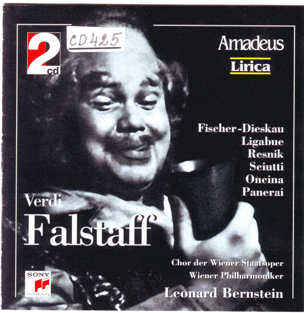Falstaff [CD аудио] Commedia lirica in tre atti : CD 1-2 Giuseppe Verdi; изп. Wiener Philharmoniker; изп. Chor der Wiener Staatsoper; баритон Dietrich Fischer-Dieskau; баритон Rolando Panerai; тенор Juan Oncina; мецосопран Regina Resnik. CD 1 Atto I, Atto II, Parte I