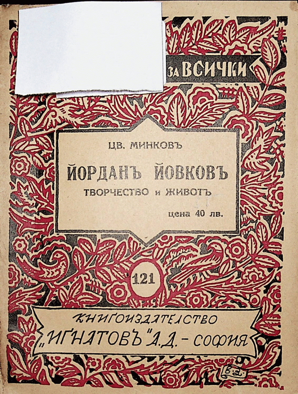 ТекстЕзик: Български Серия: Библиотека за всички | Частна колекция - Академик Михаил АрнаудовПодробности за публикацията: София книгоизд. Игнатов 1939 Описание: 112 с 16 смДруго заглавие: - Живот и творчество