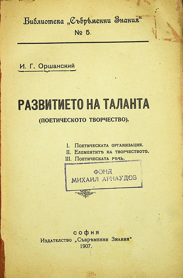 | Регионална библиотека "Любен Каравелов" Русе Фонд "Михаил Арнаудов" | МА 2409 (Разгледайте рафт(Отваря се отдолу)) | 1 | Специални фондове ( старопечатни, редки и ценни, фонд М. Арнаудов) (без рестрикции) | 120000589928 |