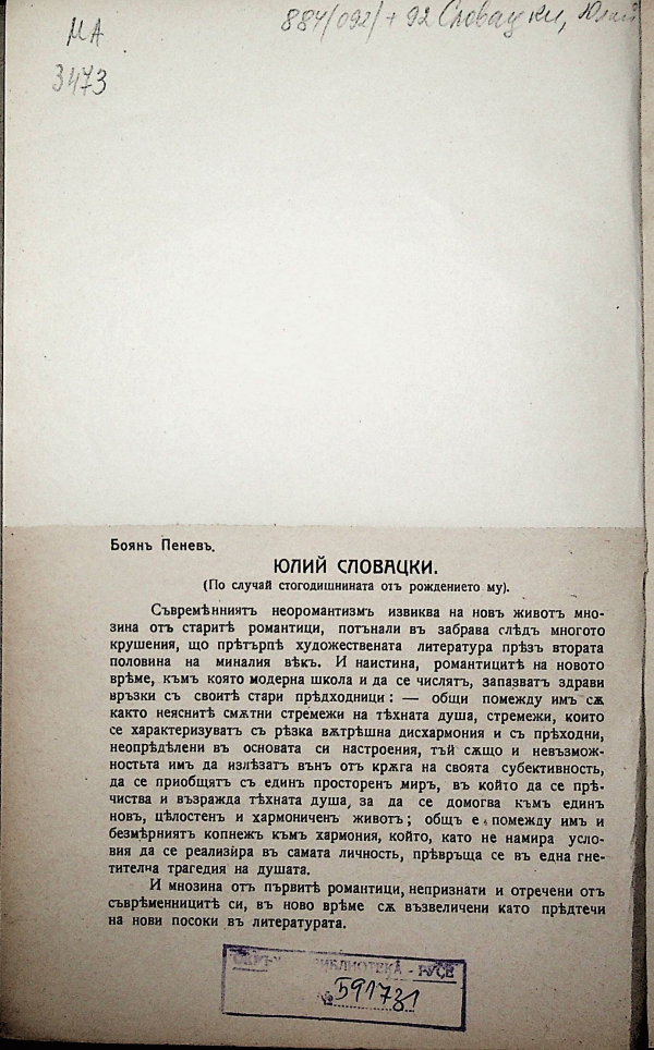 | Регионална библиотека "Любен Каравелов" Русе Фонд "Михаил Арнаудов" | МА 3473 (Разгледайте рафт(Отваря се отдолу)) | 1 | Специални фондове ( старопечатни, редки и ценни, фонд М. Арнаудов) (без рестрикции) | 120000591731 |