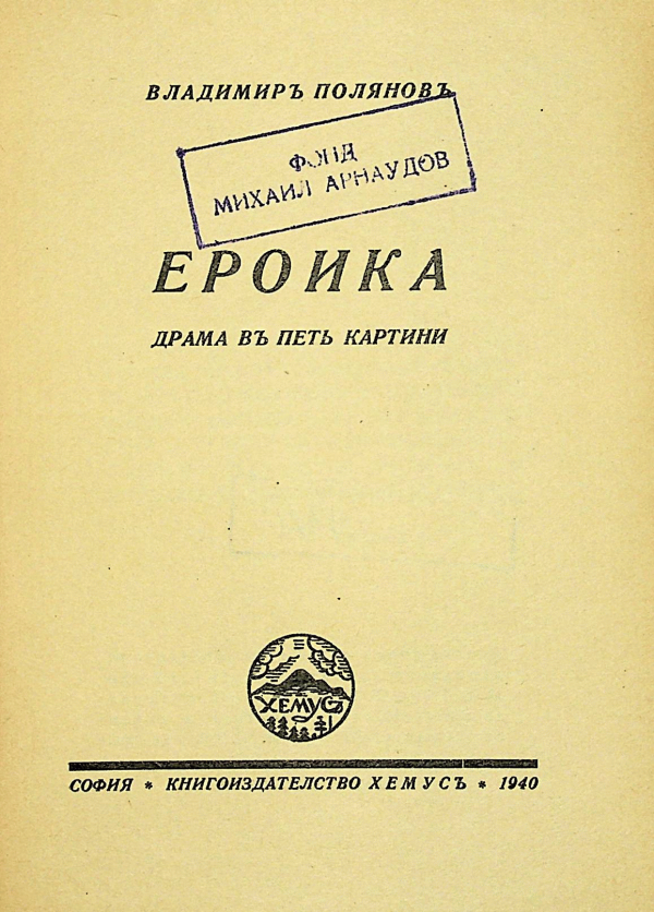 ТекстЕзик: Български Серия: Частна колекция - Академик Михаил АрнаудовПодробности за публикацията: София Хемус 1940 Описание: 84 с 19 смДруго заглавие: - Драма в 5 карт. драма-трагедии