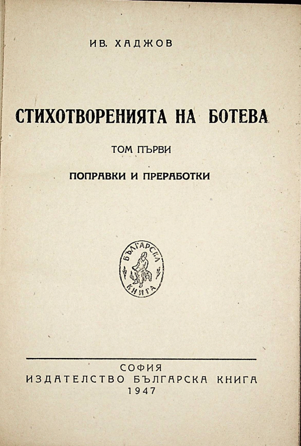 Стихотворенията на Ботева Т. 1 - Иван Хаджов T. 1 Поправки и преработки