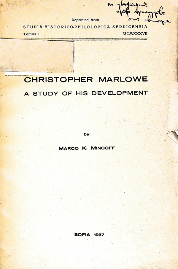 Автограф с текст: На уважаемия проф. Арнаудов от автора.; Extr. Studia historico-philologia Serdicensia : Т. 1. - 1937.
