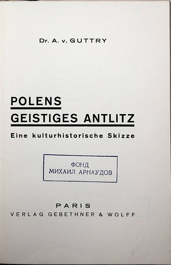 ТекстЕзик: Немски Серия: Частна колекция - Академик Михаил АрнаудовПодробности за публикацията: Paris Gebethner and Wolff s.aОписание: 90 с 19 смДруго заглавие: - Eine kulturhistorische Skizze