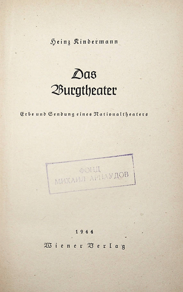 ТекстЕзик: Немски Серия: Частна колекция - Академик Михаил АрнаудовПодробности за публикацията: Wien Wiener Verlag 1944Описание: 292 с., 10 л ил. 19 смДруго заглавие: - Erbe und Sendung eines Nationaltheaters