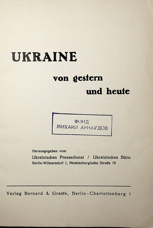 ТекстЕзик: Немски Серия: Частна колекция - Академик Михаил АрнаудовПодробности за публикацията: Berlin Bernard and Graefe s.aОписание: 61 с с к. 20 смДруго заглавие: - UKRAINE von gestern und heute