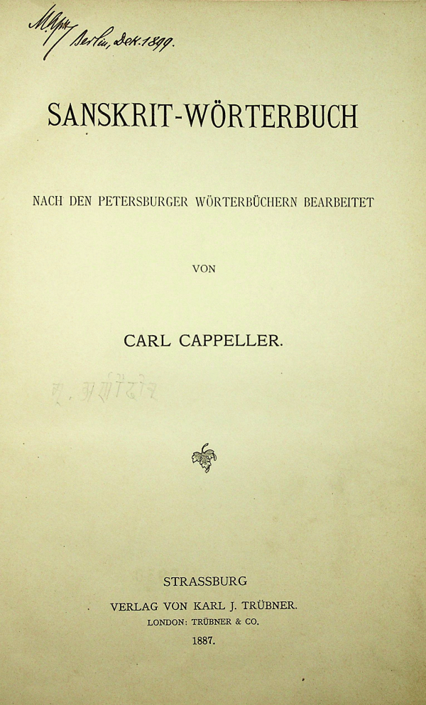 ТекстЕзик: Санскрит Серия: Частна колекция - Академик Михаил АрнаудовПодробности за публикацията: Strassburg ; London Karl J. Trubner 1887Описание: VIII, 541 с. 25 смДруго заглавие: - SANSKRIT-WORTERBUCH