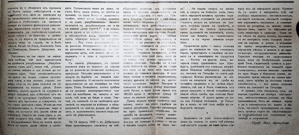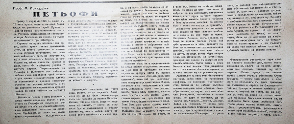 Статия на М. Арнаудов за Петьофи. Адрес : Тук Проф. д-р Мих. Арнаудов, ул. Добруджа № 8.