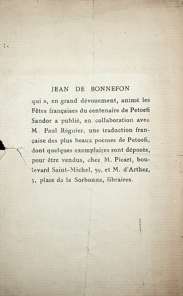 Програма за честване на Петьофи в Париж 1 л.