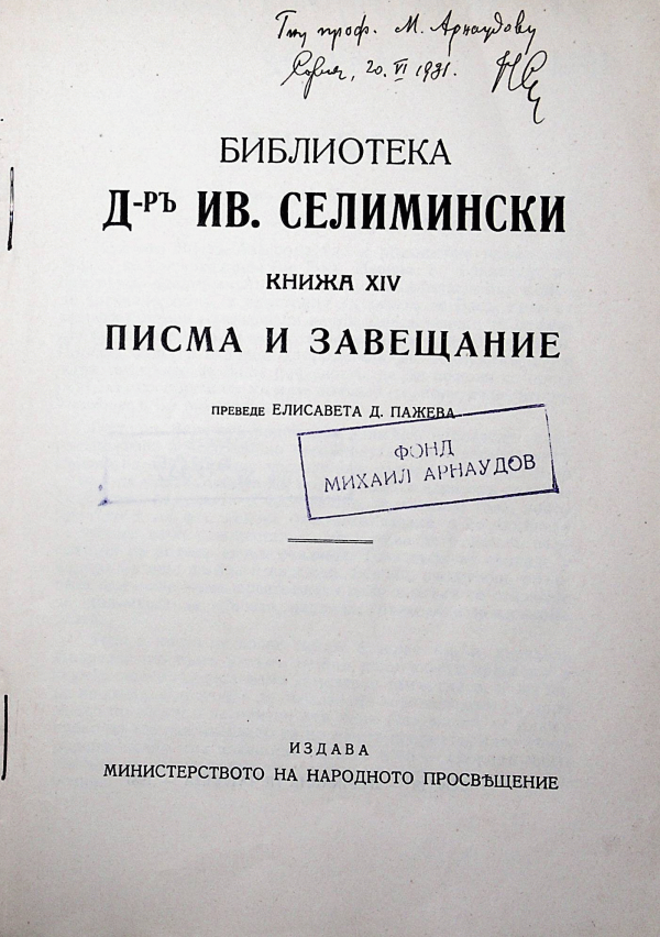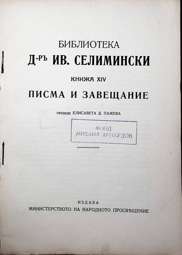 Библиотека Д-р Ив. Селимински Кн. 14 Писма и завещание