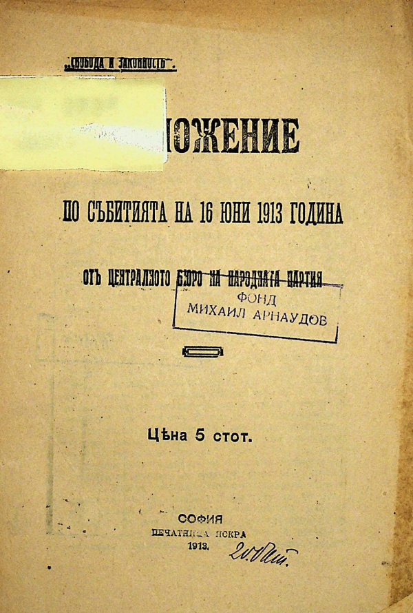 Изложение по събитията на 16 юни 1913 година от Централното бюро на народната партия