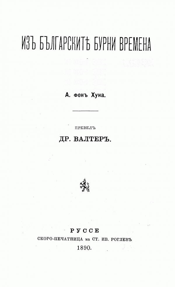 Борбата на българите за съединението си Полит.-воен. история на бълг.-румелийските събития в 1885 г. Артурн Ернст фон Хун; прев. Драгутин Карл Валтер.