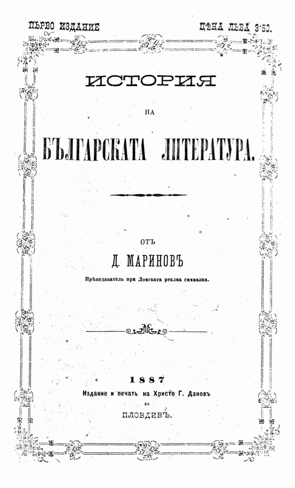 Компютърен файлЕзик: Български Серия: Колекция Редки и ценни издания | Писмените съкровища на Долен ДунавПодробности за публикацията: Христо Г. Данов 1887Описание: 332 с. 22 смПредмет(и): Онлайн ресурси: