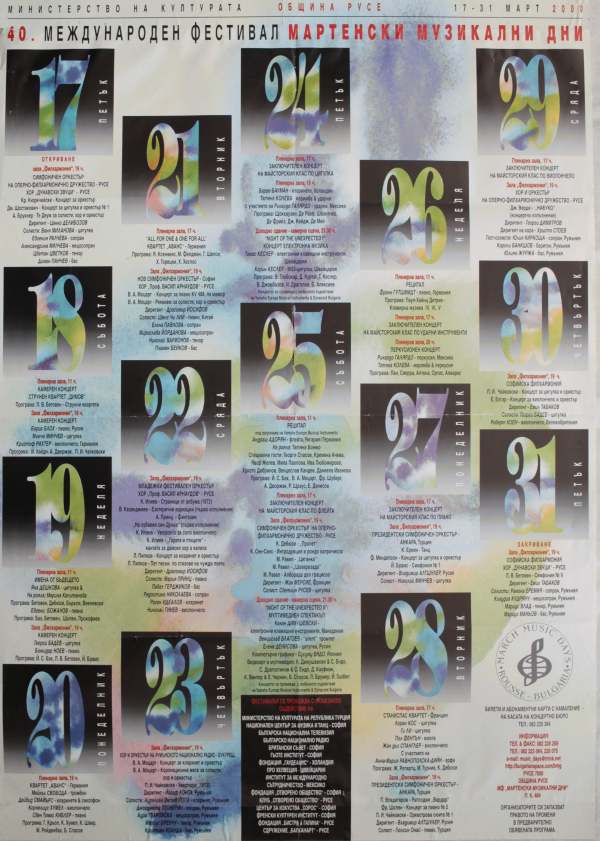 [Четиридесети] 40 международен фестивал Мартенски музикални дни: Програма 17 - 31 март 2000 [Изобразителен материал] Плакат