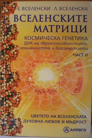 Вселенските матрици Космическа генетика. ДНК на свръхспособностите, гениалността и безсмъртието : Цветето на вселенската духовна любов и мъдрост : Ч. 1 - Евгений Николаевич Вселенски; съавт. Любов Александровна Вселенска; прев. Светлана Николова. Ч. 2 Космобиоенергетиката