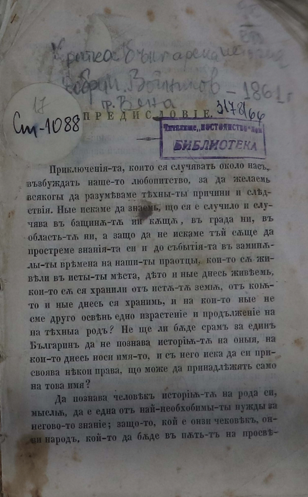 Подробности за публикацията: съдруж. на Блъг. книгопродавница в Пловдив 1861
